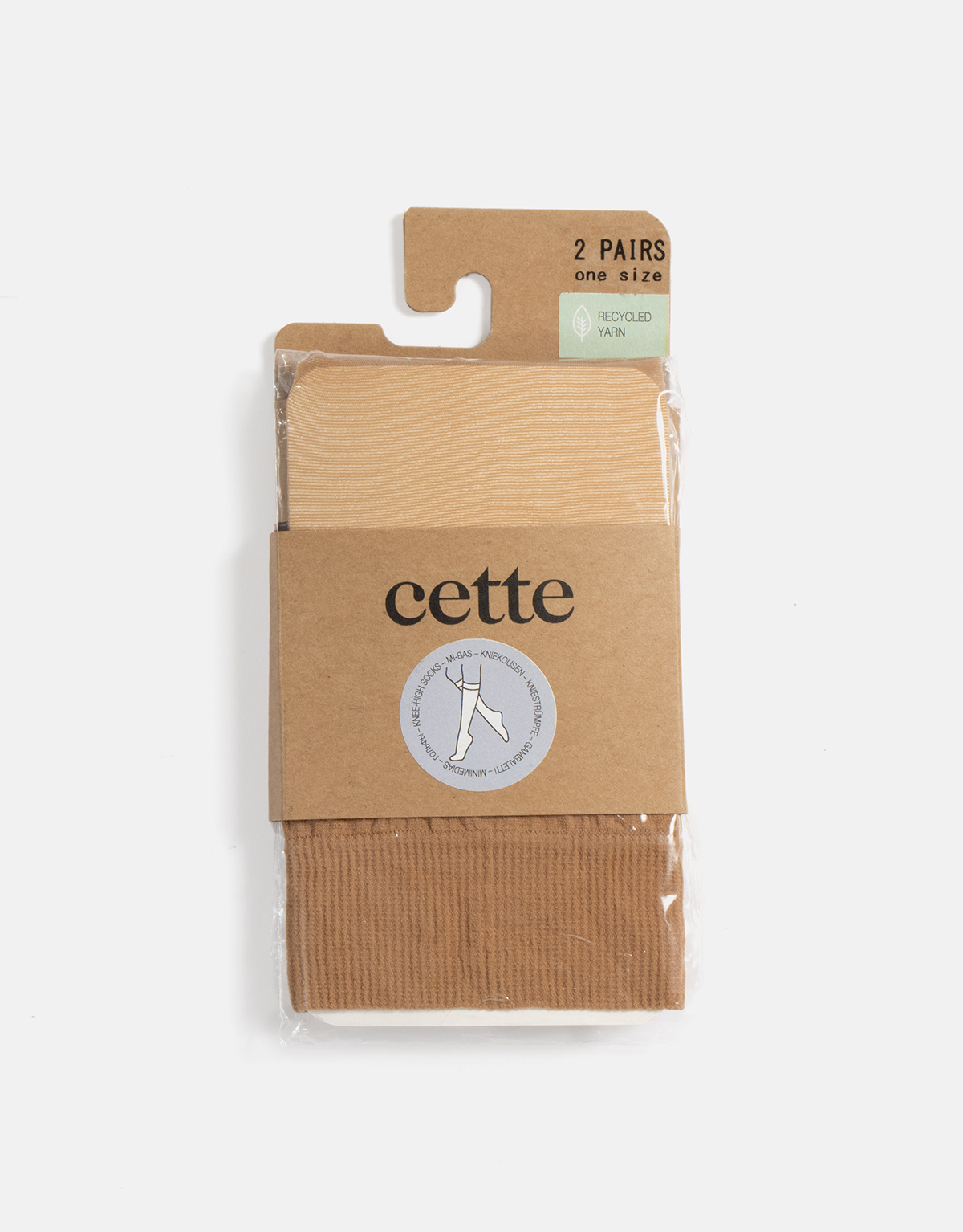 Crafted from recycled yarns, the knee-highs reflect Cette’s ongoing commitment to environmental responsibility without compromising on quality or style. The delicate, eco-conscious fabric delivers a silky, soft touch while providing subtle coverage that feels barely there on the skin.