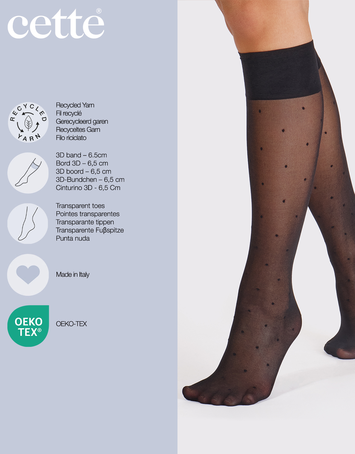 Et tidløst produkt: prøv disse nye knæstrømper med prikker lavet helt af genanvendt polyamid.