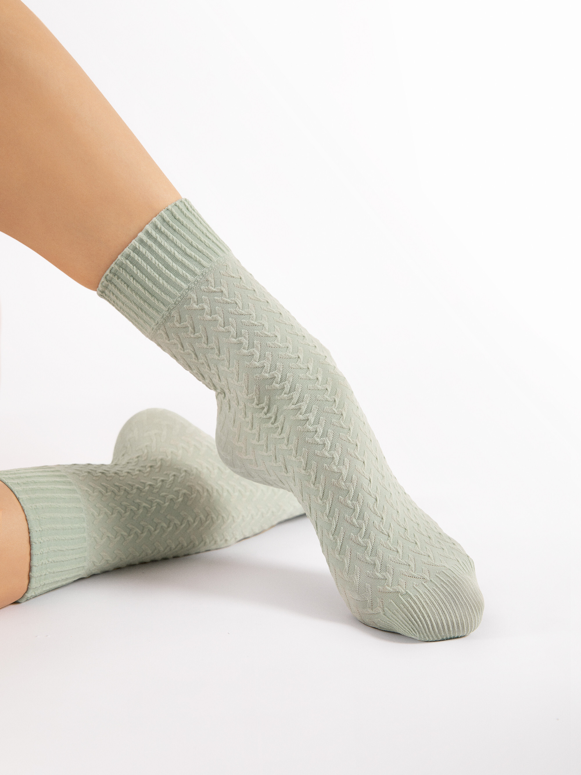 Fiore - 40 denier cable pattern ankle socks with comfortable top in contrast colour