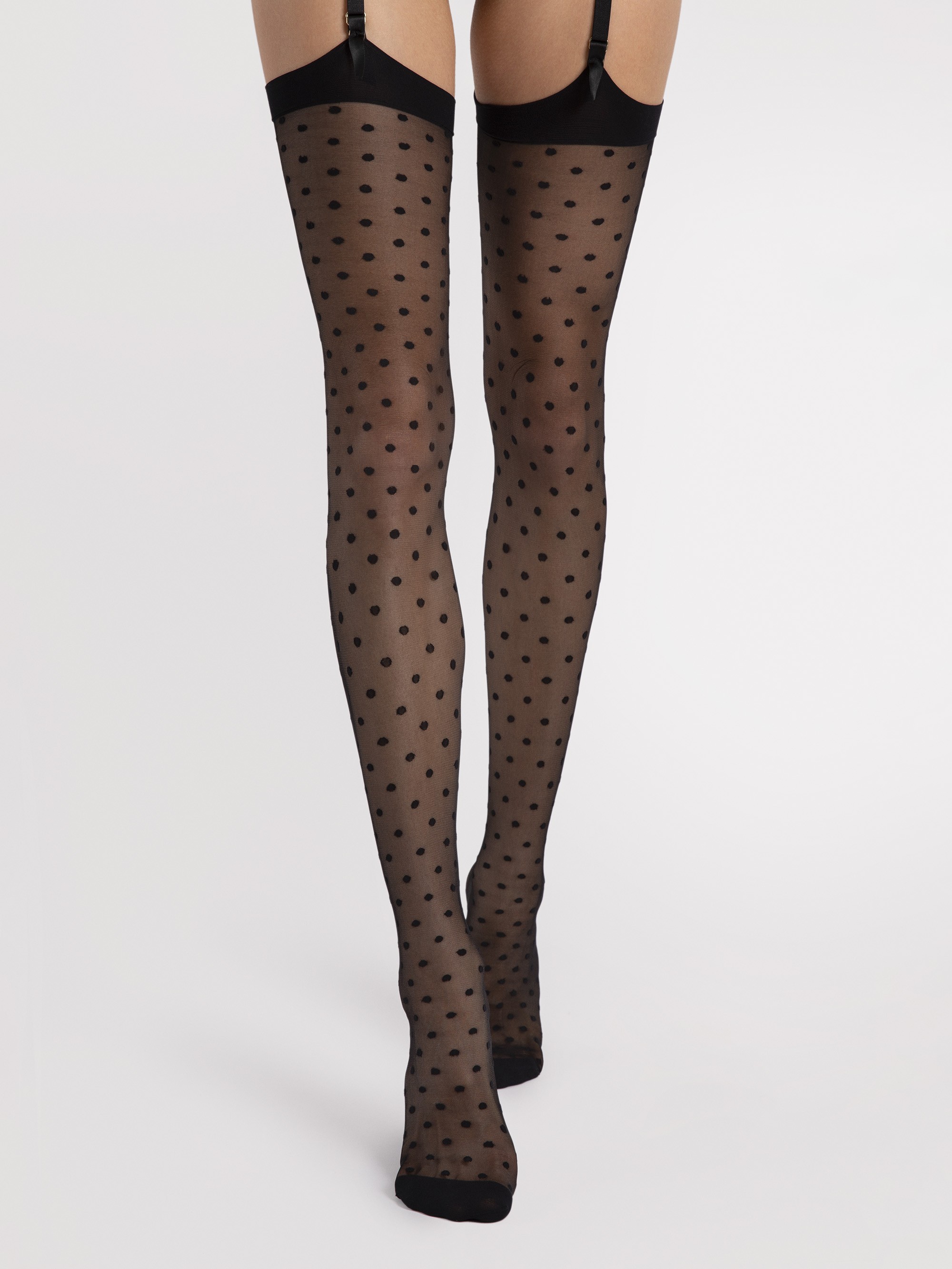 Gabriella - Sheer stockings with subtle polka dot pattern on top, 20 DEN