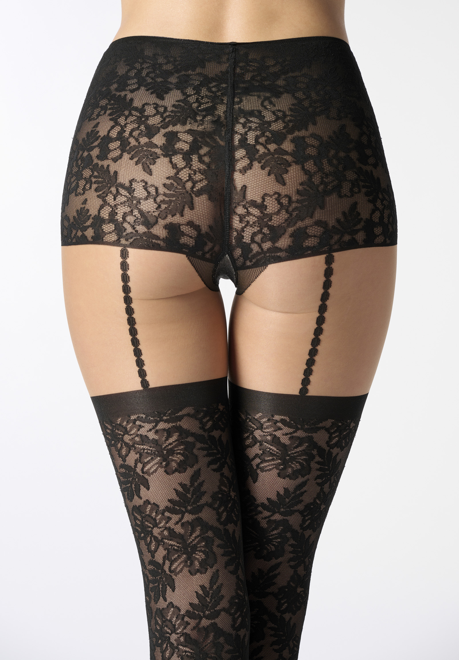 Fiore - Stylish mock suspender tights with floral pattern Eulalia 40 DEN